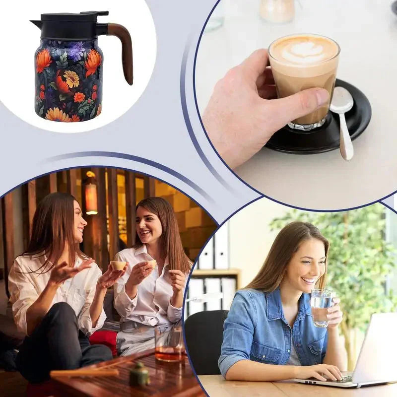 Verwandeln Sie jede Teepause in ein elegantes Ritual. Diese blumige Edelstahl-Teekanne kombiniert zeitlose Vintage-Optik mit moderner Funktionalität und sorgt für entspannten Genuss – zu Hause oder im Büro.