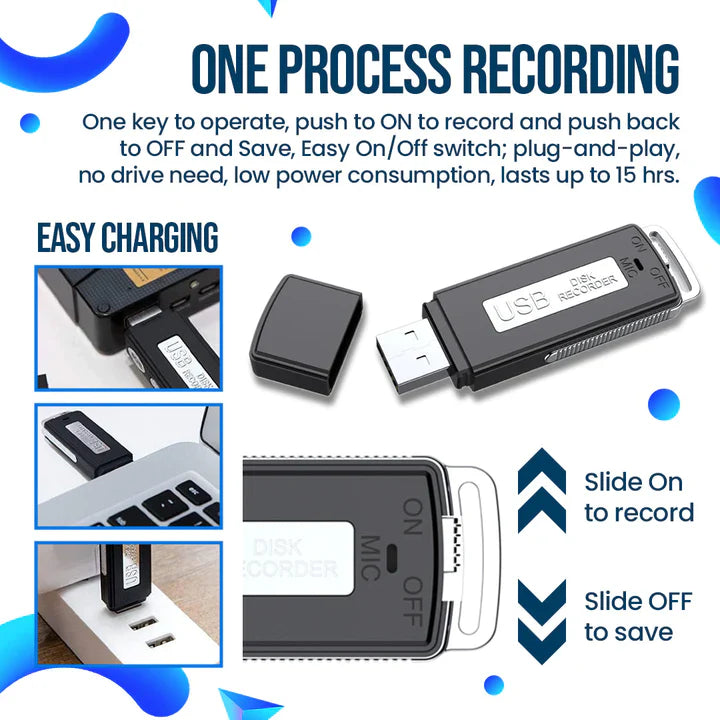 - Unauffälliges Design: Als normaler USB-Stick getarnt – perfekt für diskrete Audioaufnahmen zu Hause, im Büro oder unterwegs.