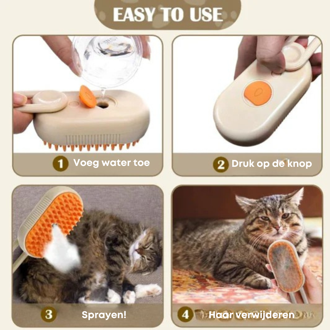 3-in-1-Pflege: Der SteamPaws™ bietet alles, was Ihr Haustier braucht: Er entfernt lose Haare und Verfilzungen, gibt eine wohltuende Massage und hat eine einfache Sprühfunktion, um Pflegeprodukte hinzuzufügen.