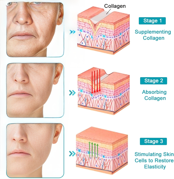Die hochkonzentrierten Kollagenpeptide dringen tief in die Haut ein und fördern ihre Elastizität und Festigkeit, sodass Sie sich wieder in Ihrer Haut wohlfühlen.