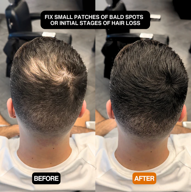 Erleben Sie, wie das CoverEdge™ Ihre kahlen Stellen in Sekunden abdeckt. Ideal für schnelle Touch-ups und ein natürliches Aussehen, das graue Haare, zurückweichende Haarlinien und fleckige Bärte verbirgt.