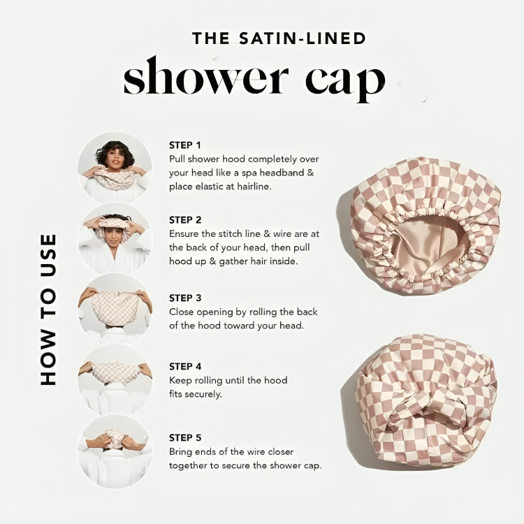 Erleben Sie, wie unsere LuxeLocks™ Duschhaube Ihr Haar vor Frizz schützt, indem sie Feuchtigkeit abhält. Perfekt für lockiges, behandeltes Haar, bleibt Ihr Look immer makellos.