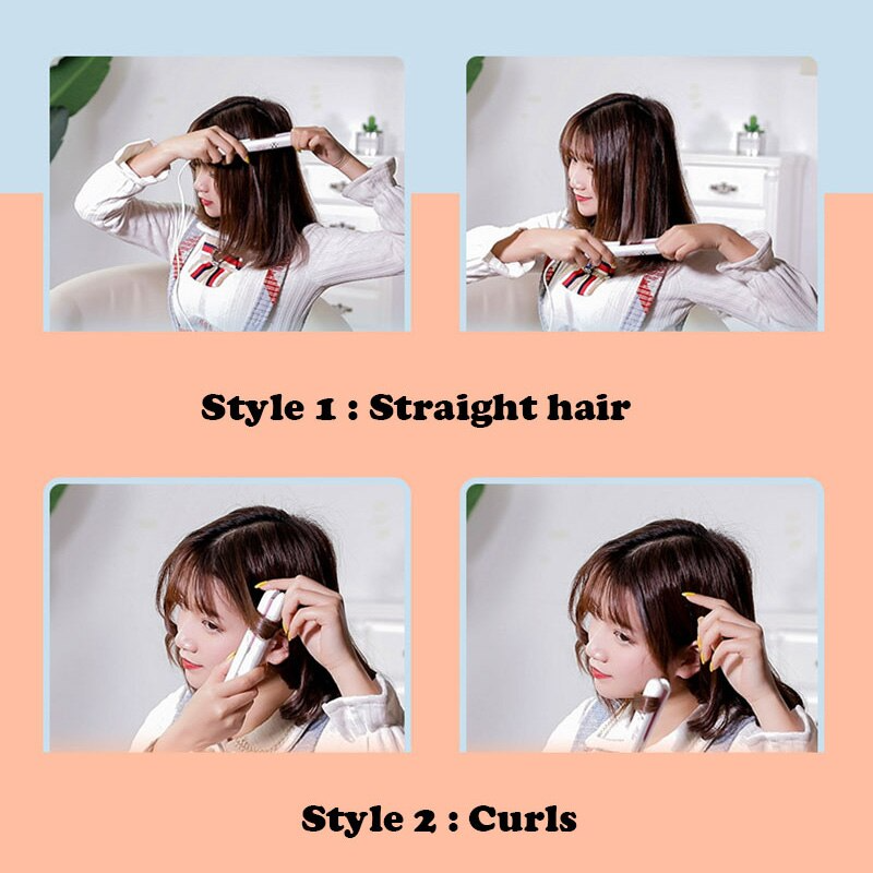 MULTIFUNKTIONALER 2 IN 1-LOCKENLOCKENLÄUFER: Der 2 in 1-Lockenstab ist nicht nur für lockiges, sondern auch für glattes Haar geeignet, insbesondere für durchsichtige Ponypartien. Keramik-Turmalin-Platten ermöglichen eine sanfte Zugbewegung, ohne das Haar zu brechen oder zu beschädigen.