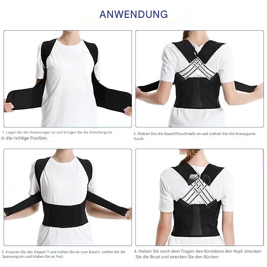 • Effektive Haltungskorrektur: Die überkreuzten Stützgurte führen Ihre Schultern automatisch in eine aufrechte Position.