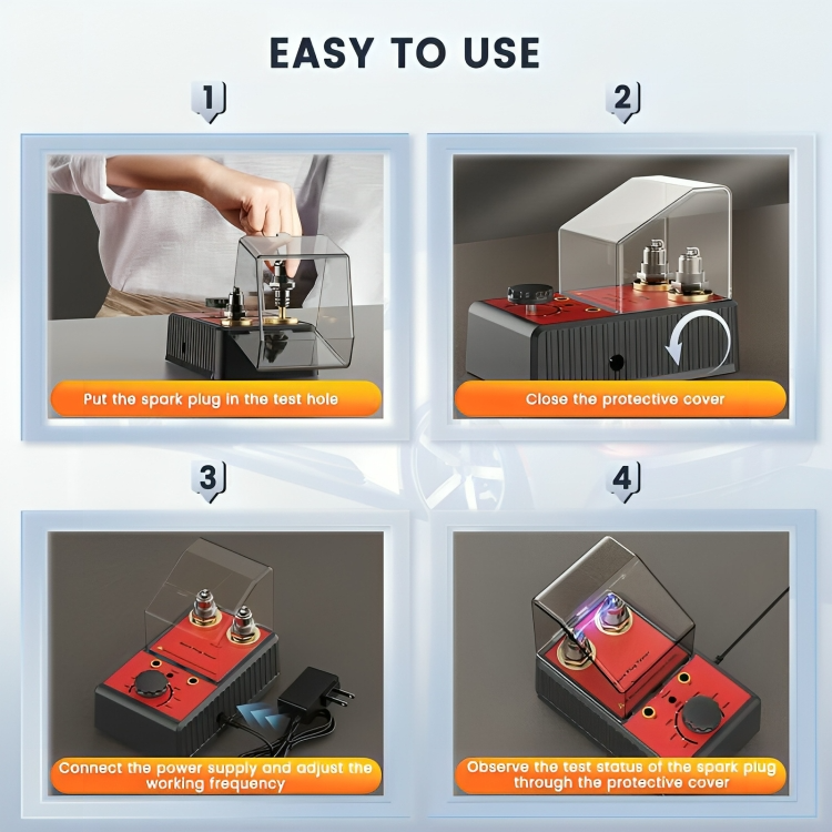 Erkennen Sie fehlerhafte Zündkerzen blitzschnell mit dem dualen Testverfahren und einer sicheren Schutzabdeckung. Vermeiden Sie unnötige Werkstattkosten und sichern Sie die Leistung Ihres Motors.
